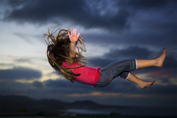 It reminds me of some shots I took one twilight of local kids playing on the trampoline in their backyard.